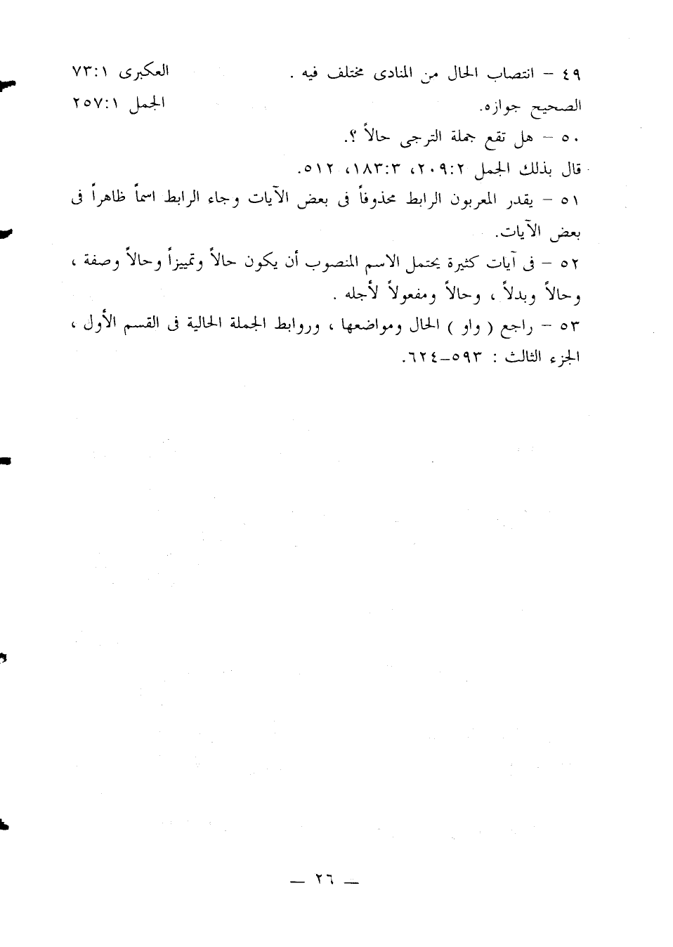 53 - راجع (واو) الحال ومواضعها، وروابط الجملة الحالية في القسم الأول، الجزء الثالث: 593 - 624.