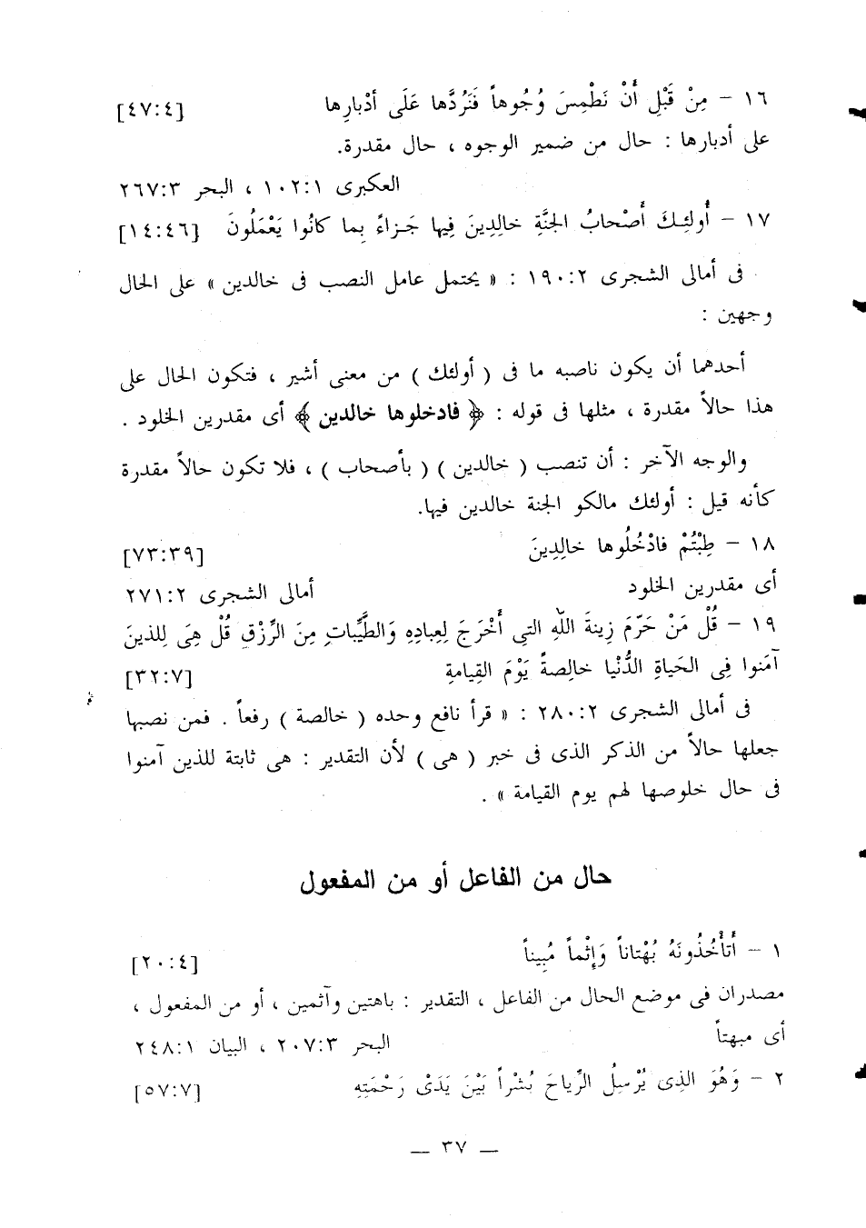 في أمالي الشجري 190:2: "يحتمل عامل النصب في خالدين" على الحال وجهين: