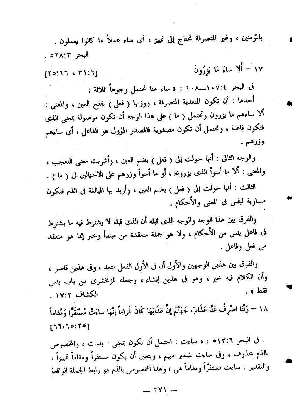 في البحر 107:4 - 108: «ساء هنا تحتمل وجوهًا ثلاثة: