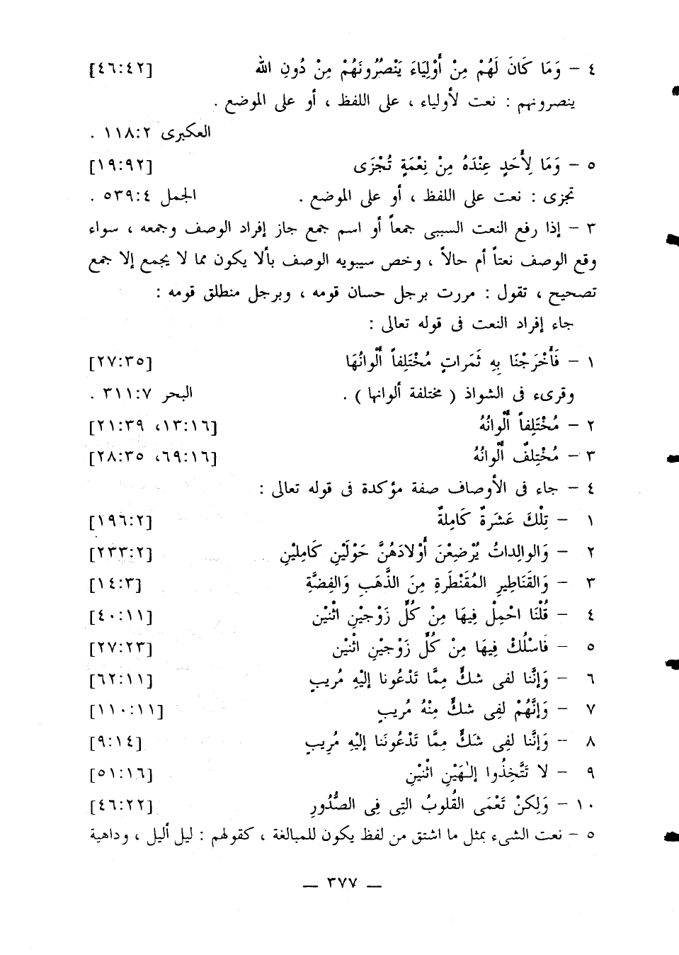 3 - إذا رفع النعت السببي جمعًا أو اسم جمع جاز إفراد الوصف وجمعه، سواء وقع الوصف نعتًا أم حالاً، وخص سيبويه الوصف بألا يكون مما لا يجمع إلا جمع تصحيح، تقول: مررت برجل حسان قومه، وبرجل منطلق قومه: