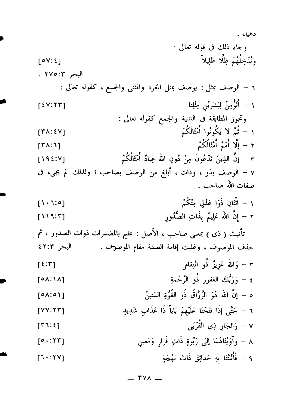 6 - الوصف بمثل: يوصف بمثل المفرد والمثنى والجمع، كقوله تعالى:
