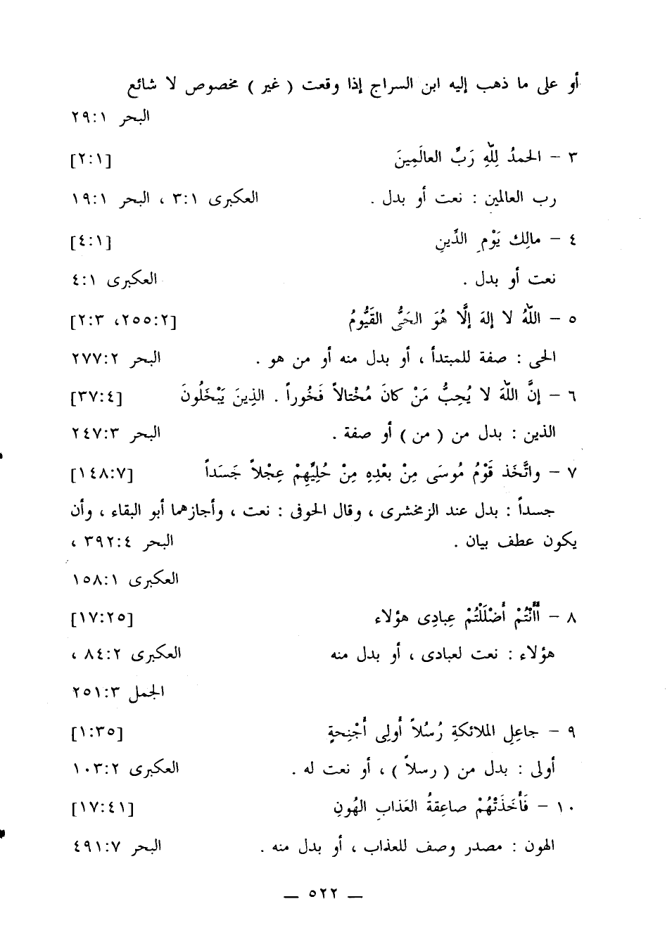 رب العالمين: نعت أو بدل. العكبري 3:1، البحر 19:1