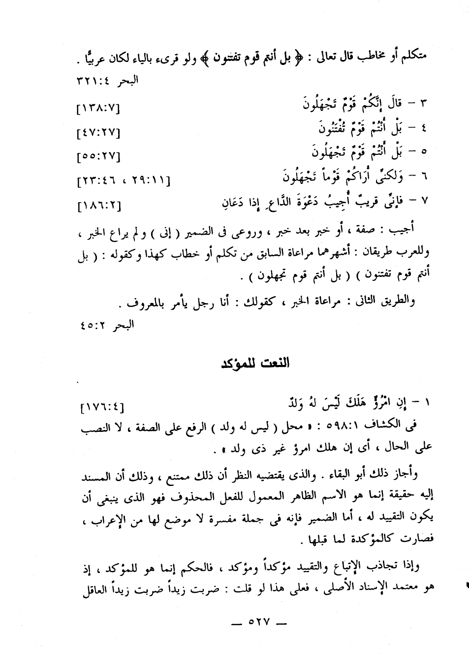 في الكشاف 598:1: «محل (ليس له ولد) الرفع على الصفة، لا النصب على الحال، أي إن هلك امرؤ غير ذي ولد».