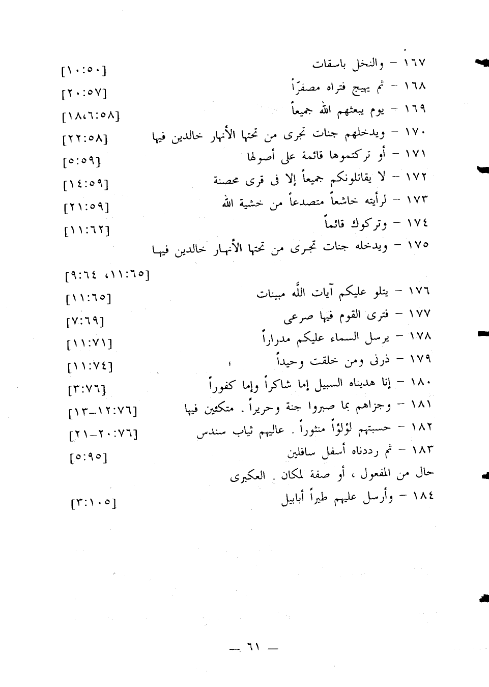 181 - وجزاهم بما صبروا جنة وحريرًا * متكئين فيها [12:76 - 13]