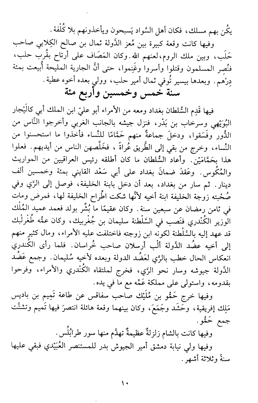 فيها قدِم السُّلطان بغداد ومعه من الأمراء أبو عليّ بن الملِك أبي كالَيْجَار البويهيّ وسرخاب بن بدر، فنزل جيشه بالجانب الغربيّ وأخرجوا النّاس من الدُّور وفَسَقوا، ودخل جماعة منهم حمَّامًا للنساء فأخذوا ما استحسنوا من النساء؛ وخرج من بقي إلى الطّريق عُراةً، فخلّصهنَّ النّاسُ من أيديهم. فعلوا هذا بحمّامين.