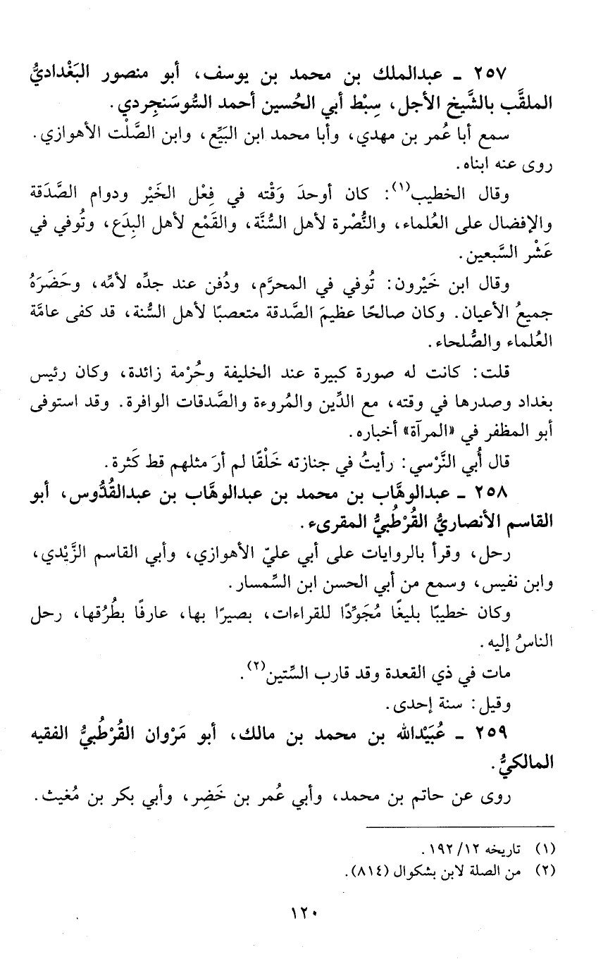 258 - عَبْد الوهَّاب بْن مُحَمَّد بْن عَبْد الوهّاب بن عبد القدوس، أبو القاسم الأنصاريّ القُرْطُبيّ المقرئ. [المتوفى: 460 هـ]