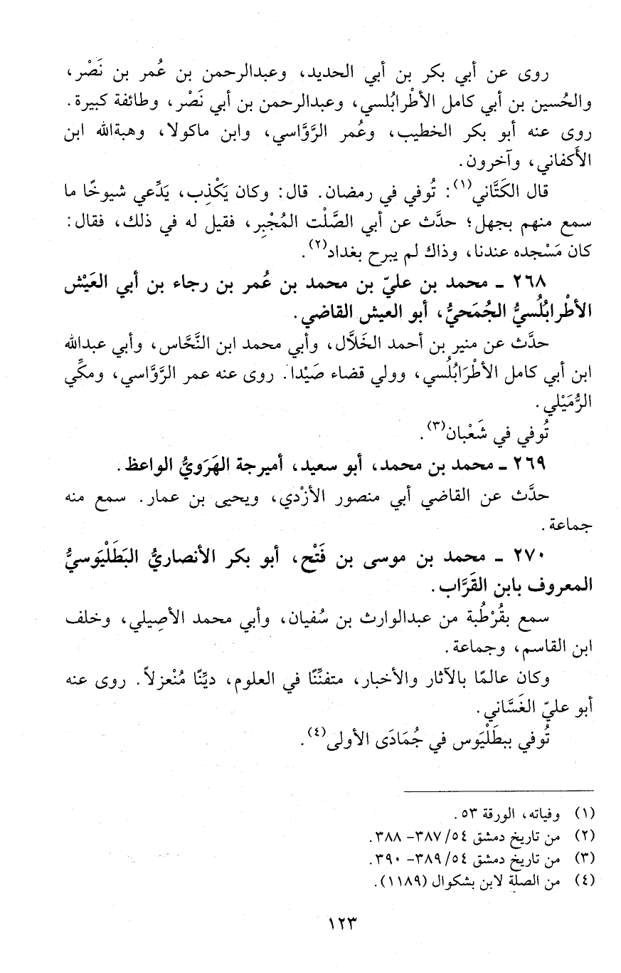 268 - محمد بن عليّ بن محمد بن عمر بن رجاء بن أبي العَيْش الَأطرابُلُسيّ الْجُمَحيّ، أبو العَيْش القاضي. [المتوفى: 460 هـ]
