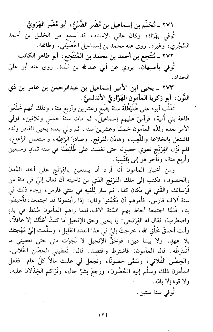 273 - يحيى ابن الأمير إسماعيل بن عبد الرحمن بن عامر بن ذي النُّون، أبو زكريا المأمون الهوَّاريّ الأندلُسيّ. [المتوفى: 460 هـ]