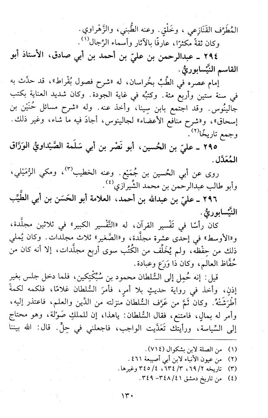 296 - علي بن عبد الله بن أحمد، العلّامة أبو الحسن بن أبي الطيب النيسابوري. [الوفاة: 451 - 460 هـ]