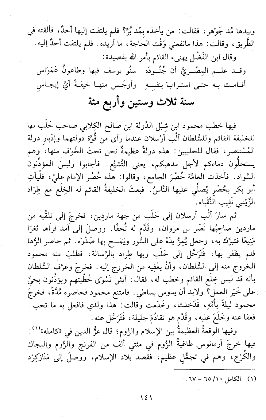 وفيها الوقعة العظيمة بين الإسلام والروم؛ قال عزّ الدين في " كامله ": فيها خرج أرمانوس طاغية الروم في مائتي ألف من الفرنج والروم والبجاك والكرج، وهم في تجمل عظيم، فقصد بلاد الإسلام، ووصل إلى مَنَازْكِرْدٍ -[142]- بُليدة من أعمال خلاط. وكان السلطان ألب أرسلان بخوي من أعمال أَذْرَبَيْجان قد عاد من حلب، فبلغه كثرة جموعهم وليس معه من عساكره إلا خمسة عشر ألف فارس، فقصدهم وقال: أنا ألتقيهم صابرًا محتسباً، فإن سلمت فبنعمة الله، وإن كانت الشهادة فابني ملكشاه ولي عهدي.