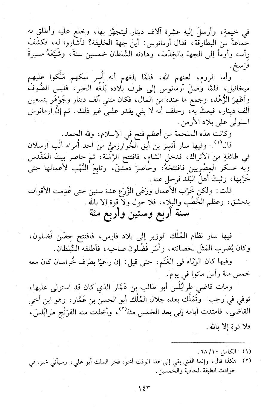 ومات قاضي طرابلس أبو طالب بن عمار الذي كان قد استولى عليها، توفي في رجب. وتملك بعده جلال الملك أبو الحسن بن عمار، وهو ابن أخي القاضي، فامتدت أيامه إلى بعد الخمسمائة، وأخذت منه الفرنج طرابلس، فلا قوة إلا بالله.