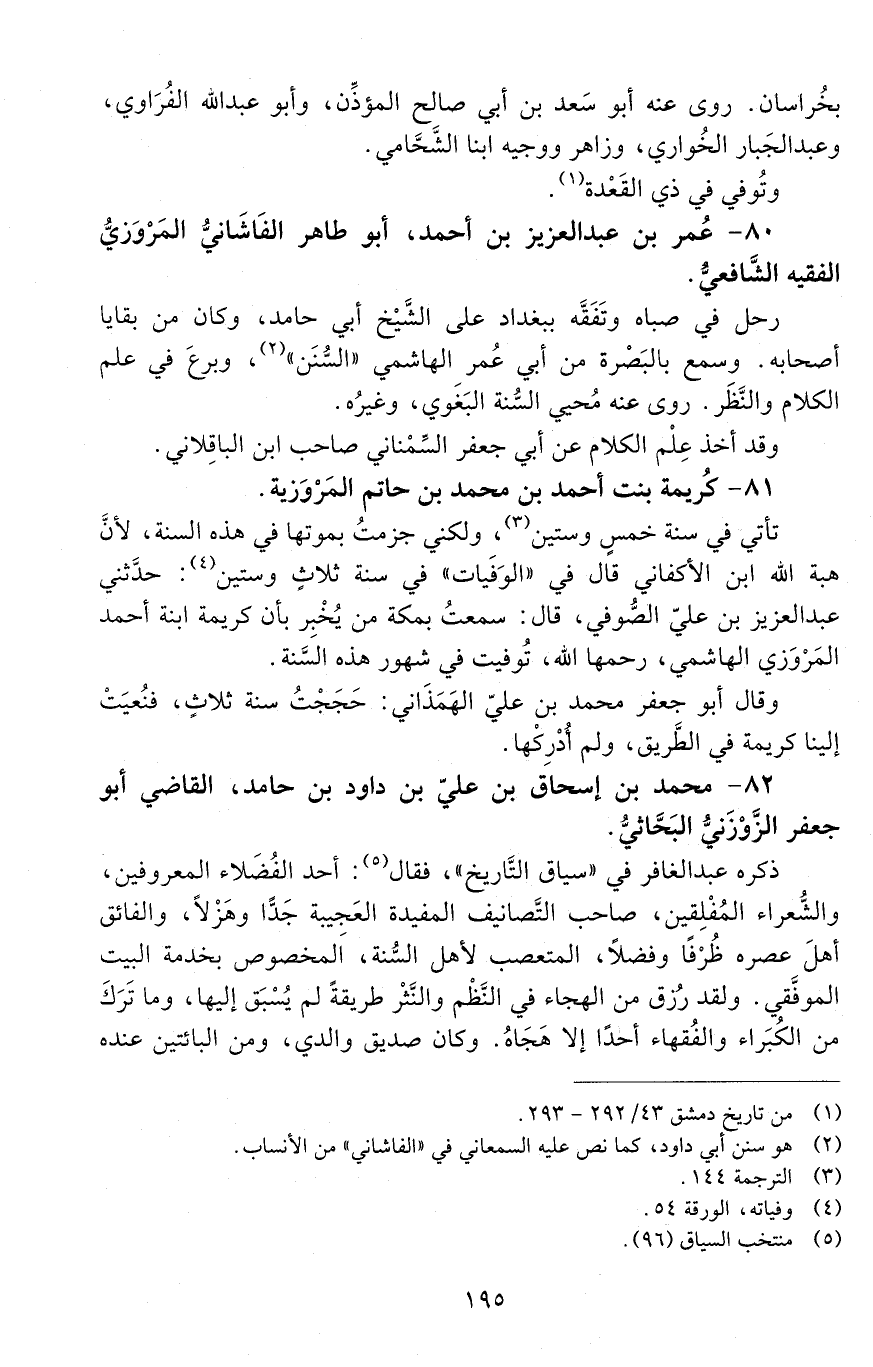 80 - عُمَر بْن عَبْد الْعَزِيز بْن أَحْمَد، أَبُو طاهر الفاشاني المَرْوَزِيّ. الفقيه الشافعي. [المتوفى: 463 هـ]