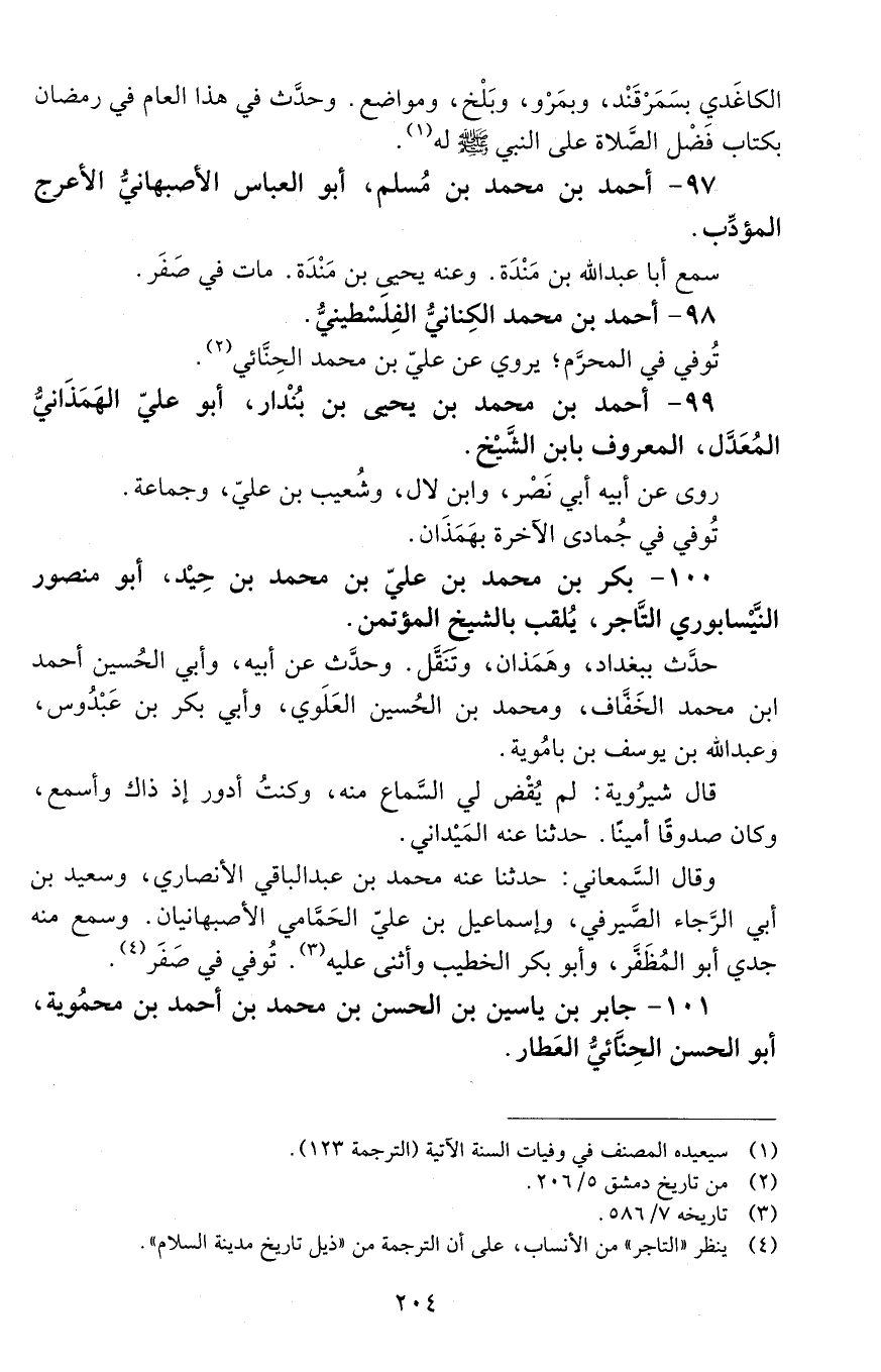 99 - أَحْمَد بْن مُحَمَّد بْن يحيى بْن بُنْدار، أبو عليّ الهَمَذَانيّ المعدّل، المعروف بابن الشّيخ. [المتوفى: 464 هـ]