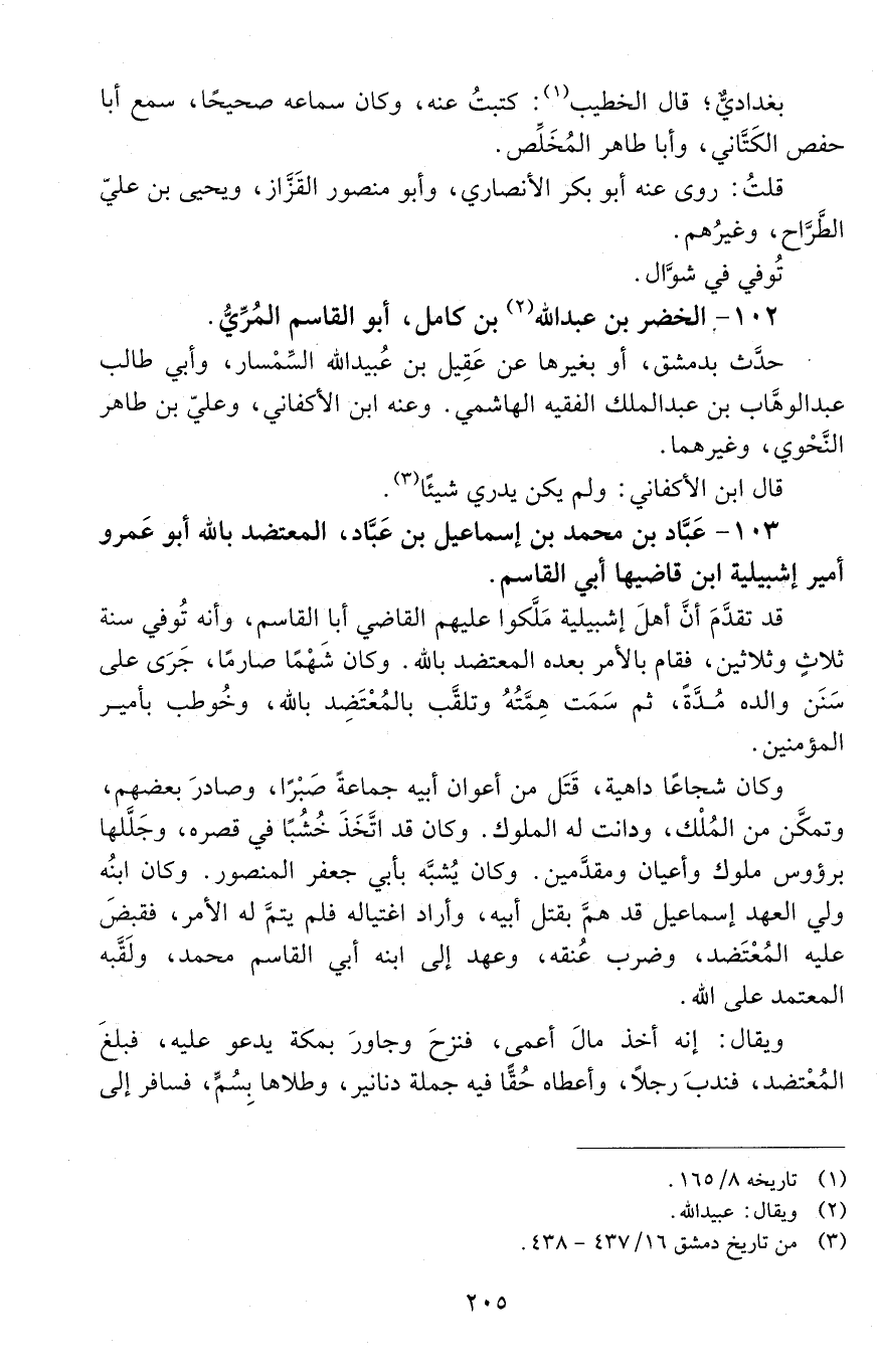 103 - عباد بْن مُحَمَّد بْن إِسْمَاعِيل بْن عَبّاد، المعتضد بالله أبو عَمْرو [المتوفى: 464 هـ]