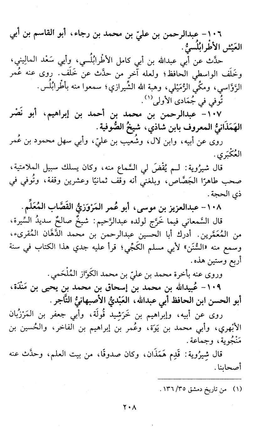 107 - عَبْد الرَّحْمَن بن محمد بن أحمد بن إبراهيم، أبو نصْر الهَمَذَاني، المعروف بابن شاذي، [المتوفى: 464 هـ]