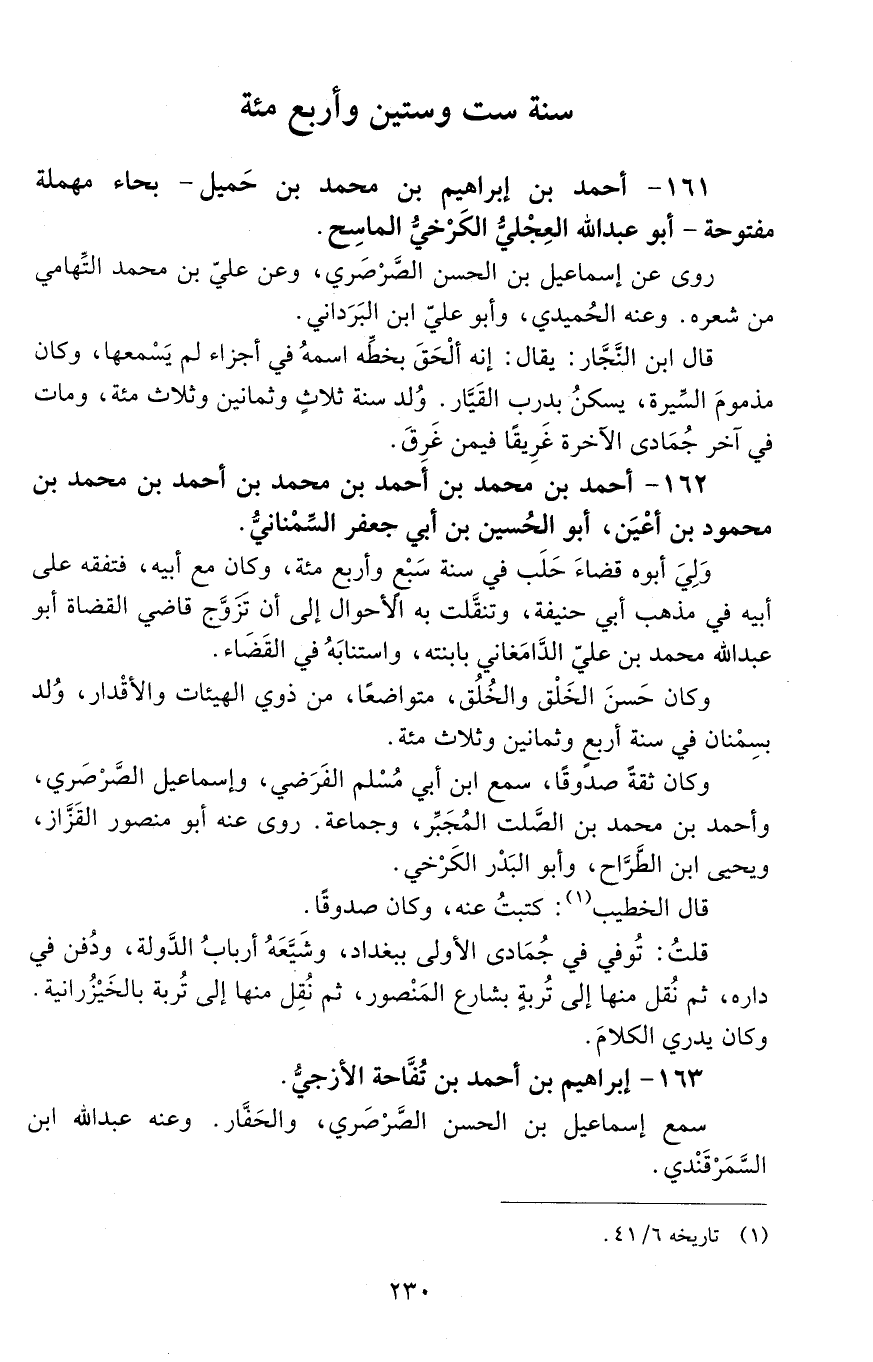 161 - أَحْمَد بْن إِبْرَاهِيم بْن مُحَمَّد بْن حَميل - بحاء مهملة مفتوحة - أبو عَبْد اللَّه العِجْليّ الكَرْخيّ الماسح. [المتوفى: 466 هـ]