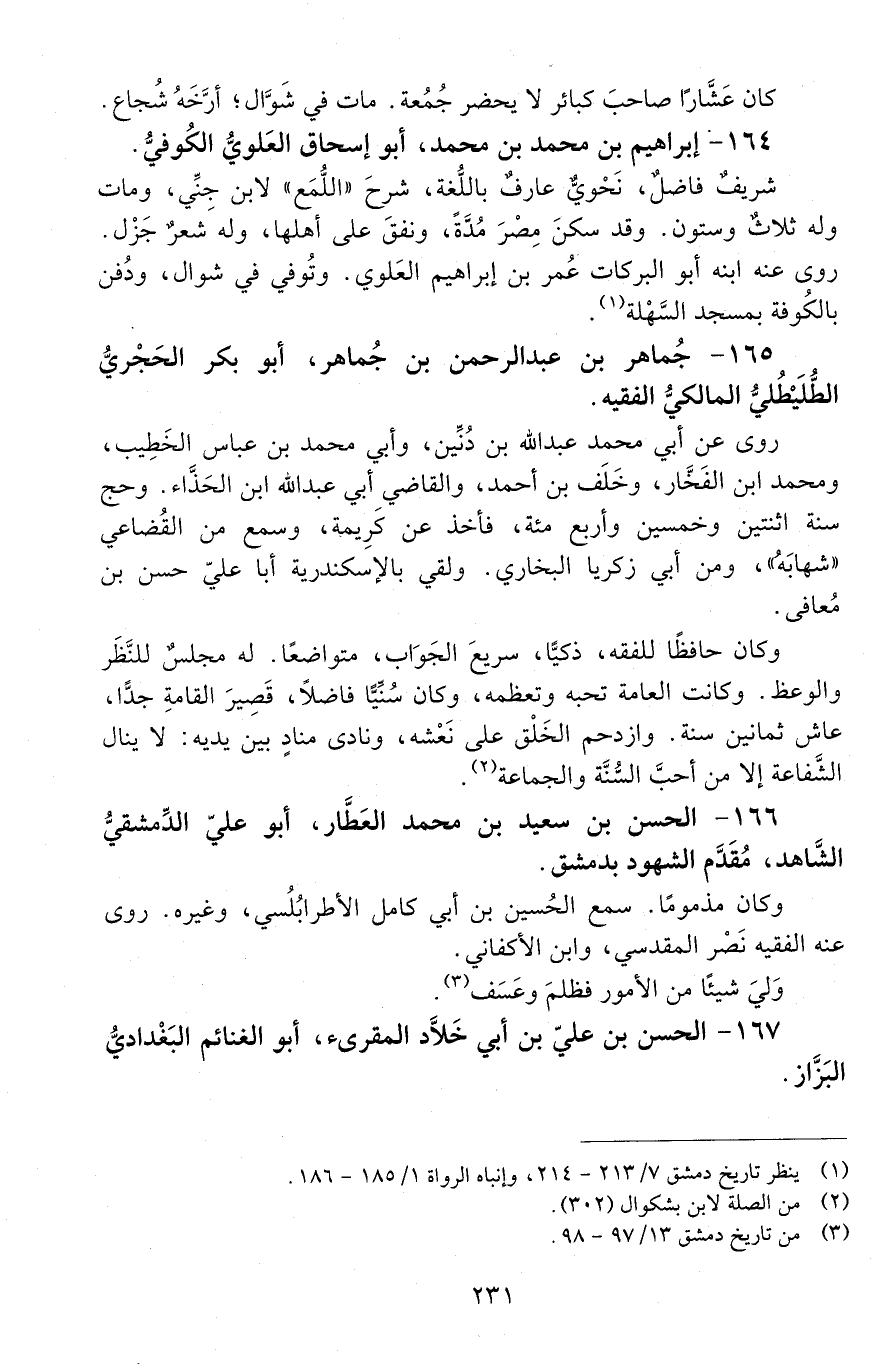 166 - الْحَسَن بْن سَعِيد بْن مُحَمَّد العطّار، أبو عليّ الدّمشقيّ الشّاهد. [المتوفى: 466 هـ]