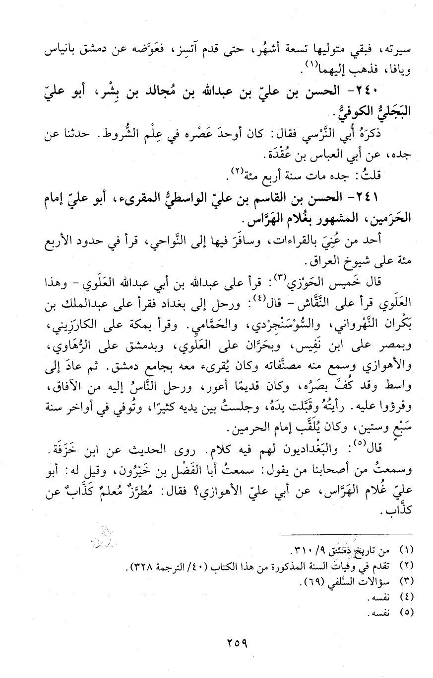 241 - الْحَسَن بْن القاسم بْن عليّ الواسطي المقرئ، أبو علي، إمام الحرمين، المشهور بغلام الهراس. [المتوفى: 468 هـ]