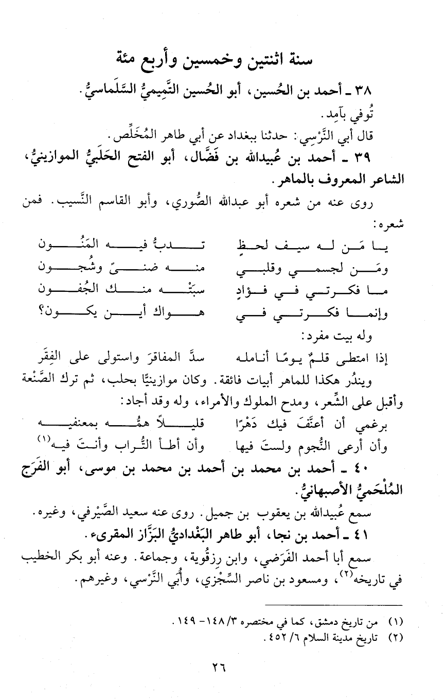 39 - أَحْمَد بن عُبيد اللَّه بن فَضَال، أبو الفتح الحلبيّ الموازينيّ، الشّاعر المعروف بالماهر. [المتوفى: 452 هـ]