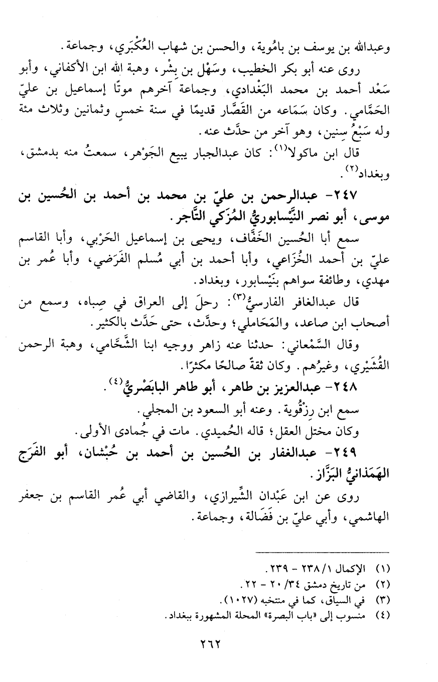 249 - عَبْد الغفار بْن الْحُسَيْن بْن أَحْمَد بْن حبشان، أبو الفَرَج الهَمَذَانيّ البزّاز. [المتوفى: 468 هـ]