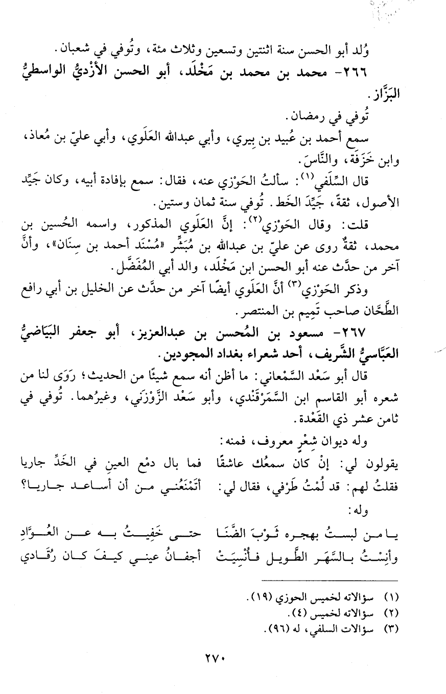 267 - مَسْعُود بْن الْمُحْسِن بْن عَبْد الْعَزِيز، أبو جَعْفَر البياضي العباسي الشريف، [المتوفى: 468 هـ]