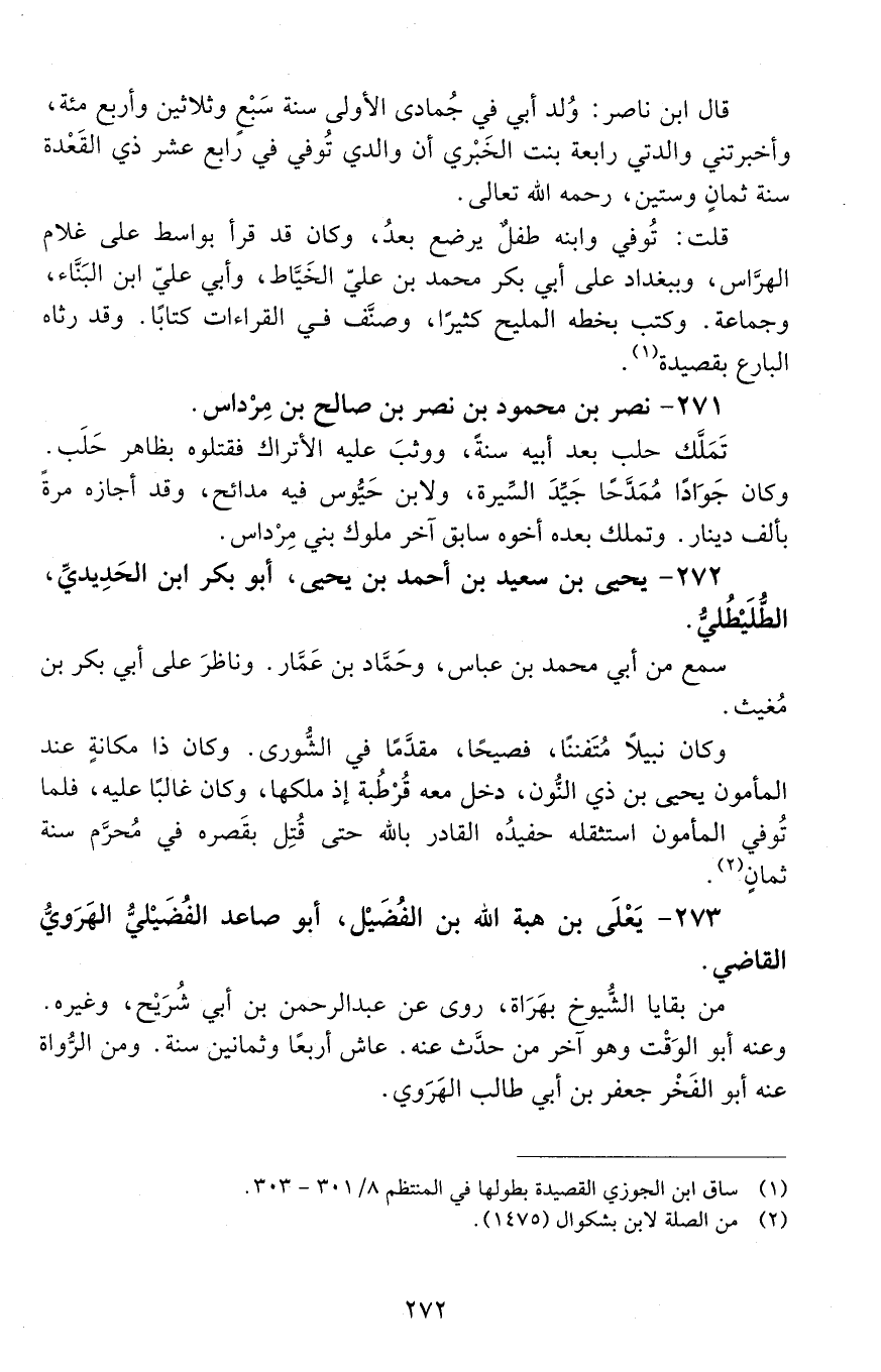 272 - يحيى بْن سَعِيد بْن أَحْمَد بْن يحيى، أبو بكر ابن الحديدي الطُّلَيْطِليّ. [المتوفى: 468 هـ]