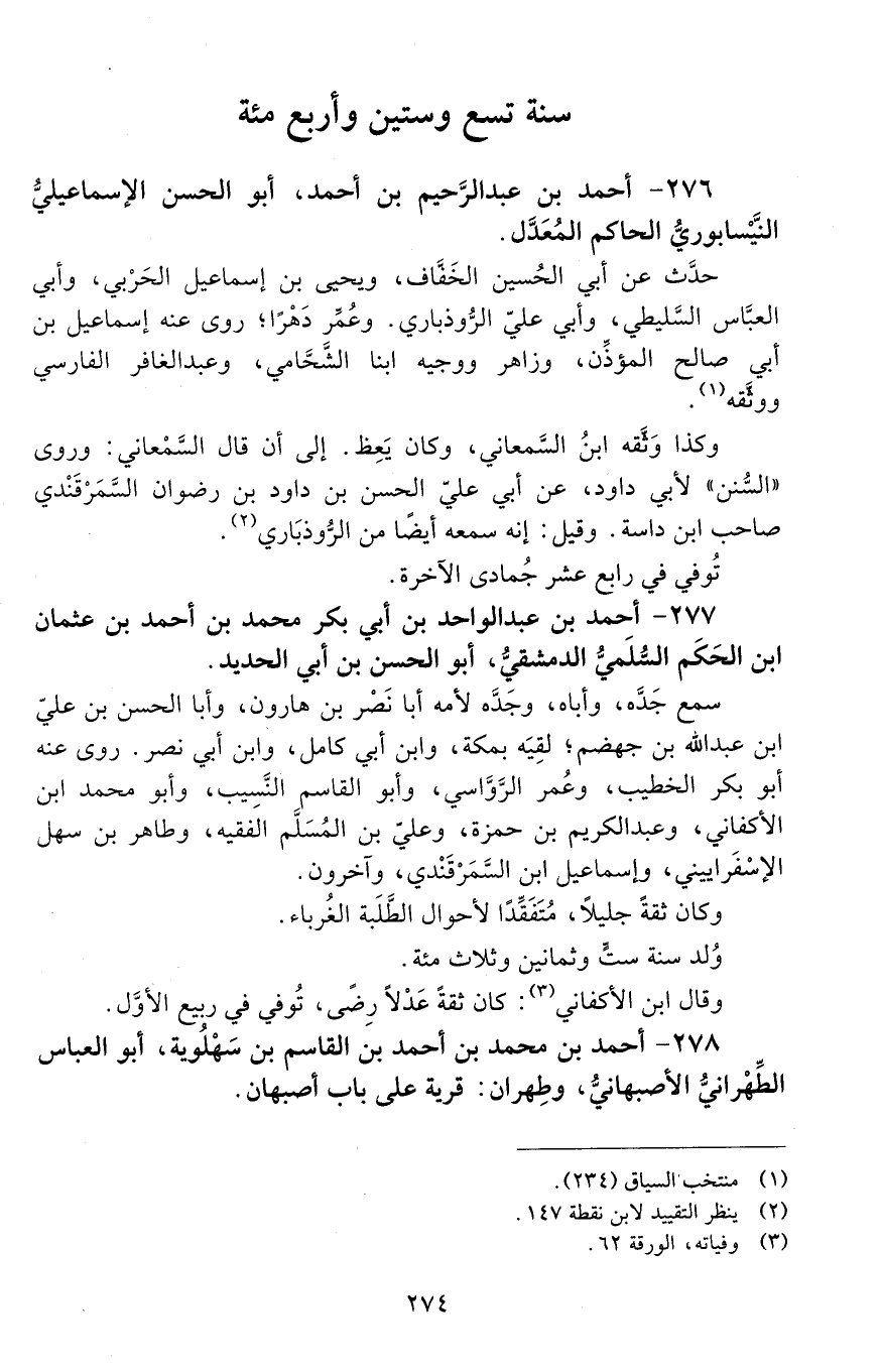 276 - أَحْمَد بْن عَبْد الرحيم بْن أَحْمَد، أبو الْحَسَن الإسماعيلي النَّيْسابوري، الحاكم المعدل. [المتوفى: 469 هـ]