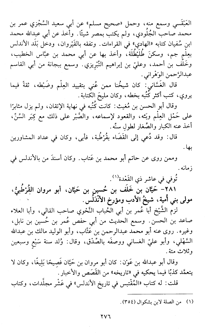 281 - حيان بْن خلف بْن حُسَيْنِ بْن حيان، أبو مروان القرطبي، [المتوفى: 469 هـ]