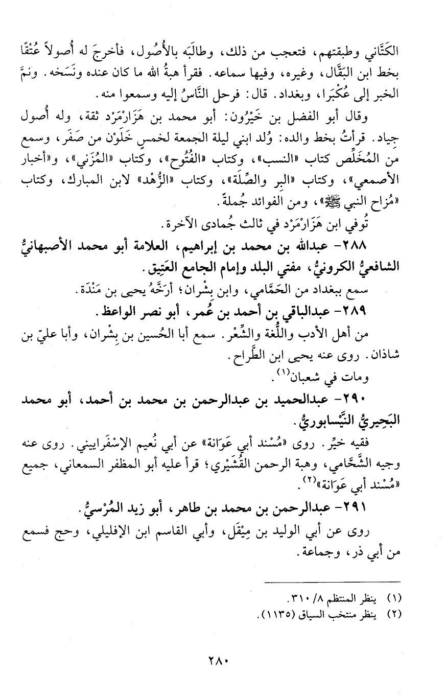 288 - عَبْد اللَّه بْن مُحَمَّد بْن إِبْرَاهِيم، العلامة أبو مُحَمَّد الأصبهاني الشافعي الكروني، [المتوفى: 469 هـ]
