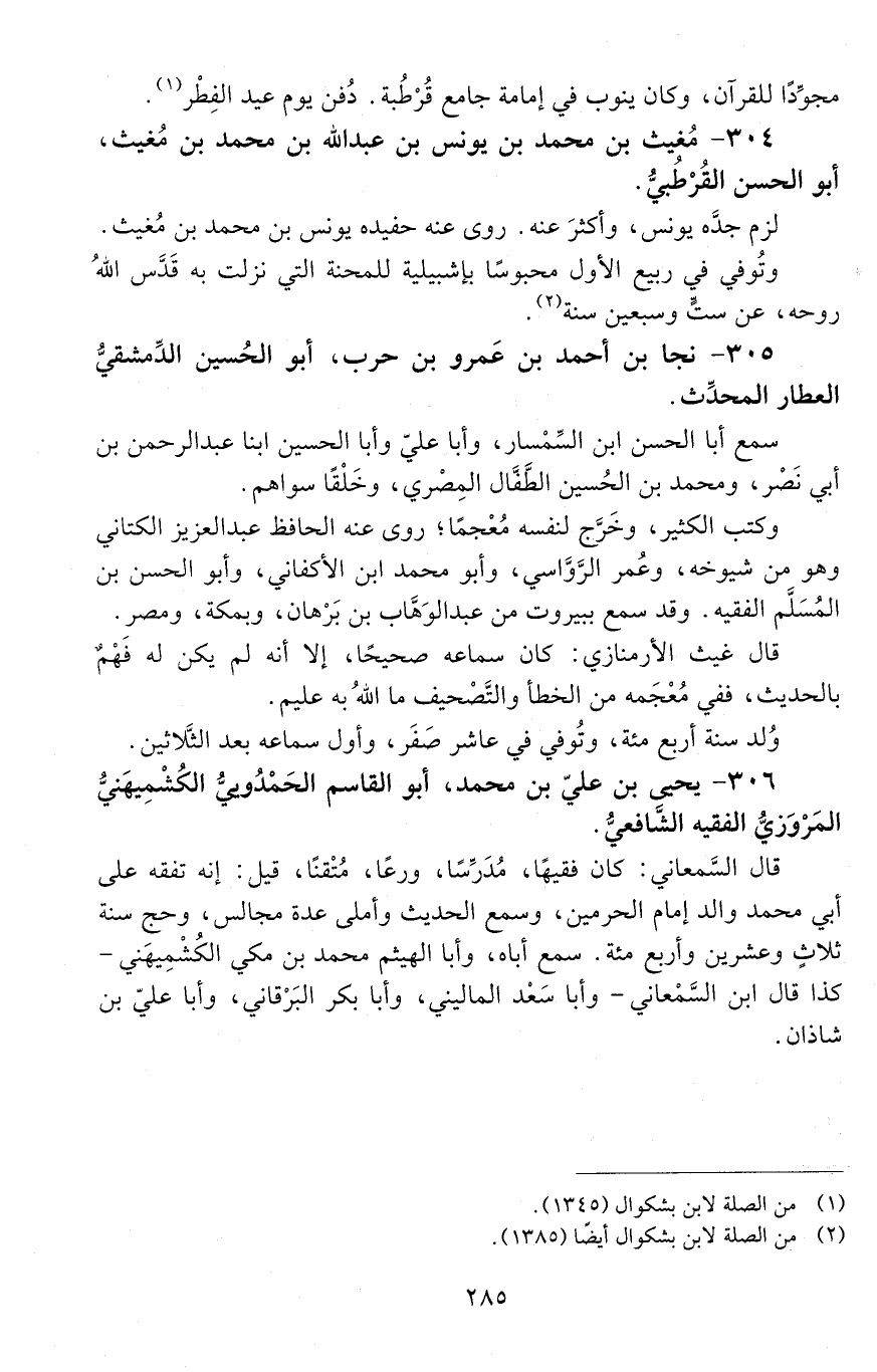 305 - نجا بْن أَحْمَد بْن عَمْرو بْن حرب، أبو الْحُسَيْن الدَّمشقيّ العطار المحدِّث. [المتوفى: 469 هـ]
