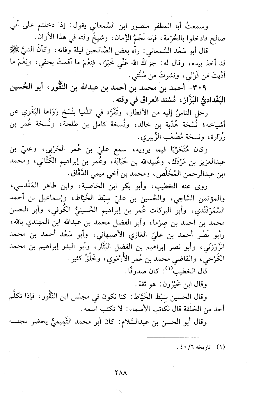 309 - أَحْمَد بْن مُحَمَّد بْن أَحْمَد بْن عَبْد اللَّه بْن النَّقُّور، أبو الْحُسَيْن الْبَغْدَادِيّ البزّاز، [المتوفى: 470 هـ]