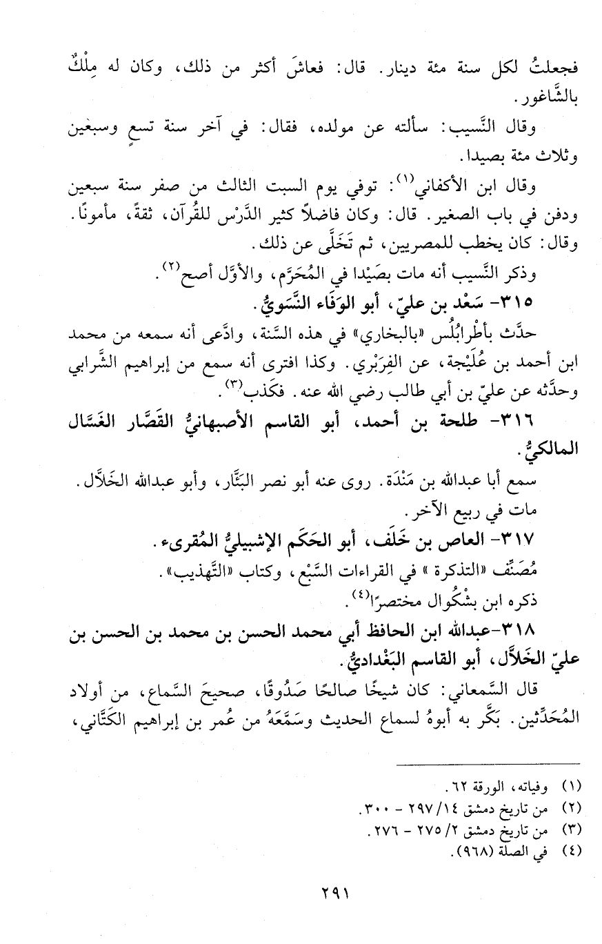 316 - طَلْحَة بْن أَحْمَد، أبو القاسم الأصبهاني القصّار الغسّال، المالكّي. [المتوفى: 470 هـ]