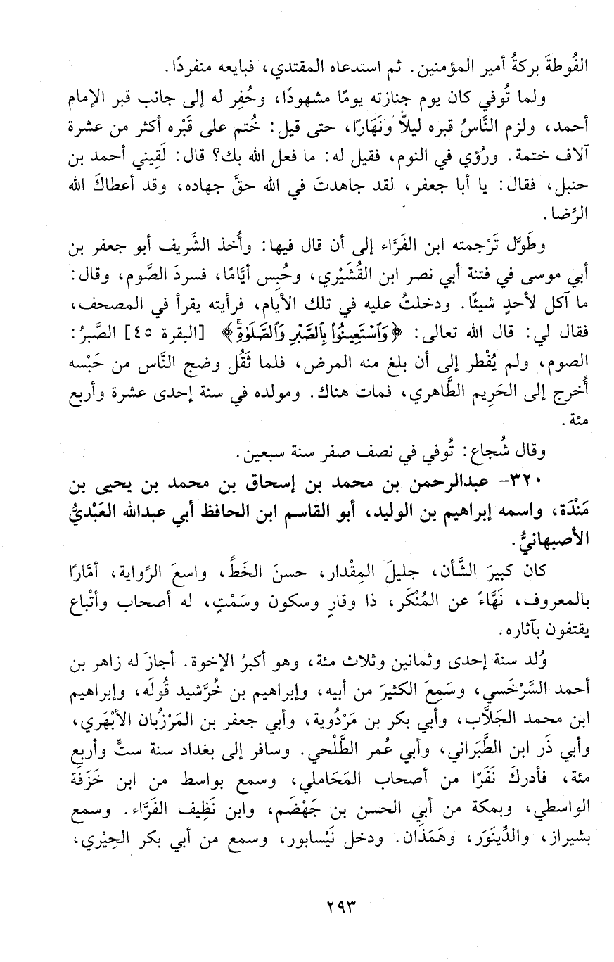 320 - عَبْد الرَّحْمَن بْن مُحَمَّد بْن إِسْحَاق بْن مُحَمَّد بْن يحيى بْن مَنْدَه، واسمه إِبْرَاهِيم بن الوليد، أبو القاسم ابن الحافظ أَبِي عَبْد اللَّه العبدي الأصبهاني. [المتوفى: 470 هـ]