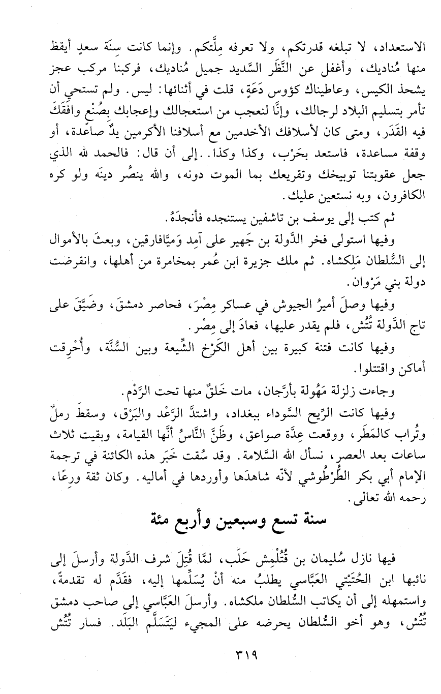 وفيها كانت فتنة هائلة بين السُّنّة والشّيعة، وكادت الشّيعة أن تهلك، ثمّ حجز بينهم الدّولة.