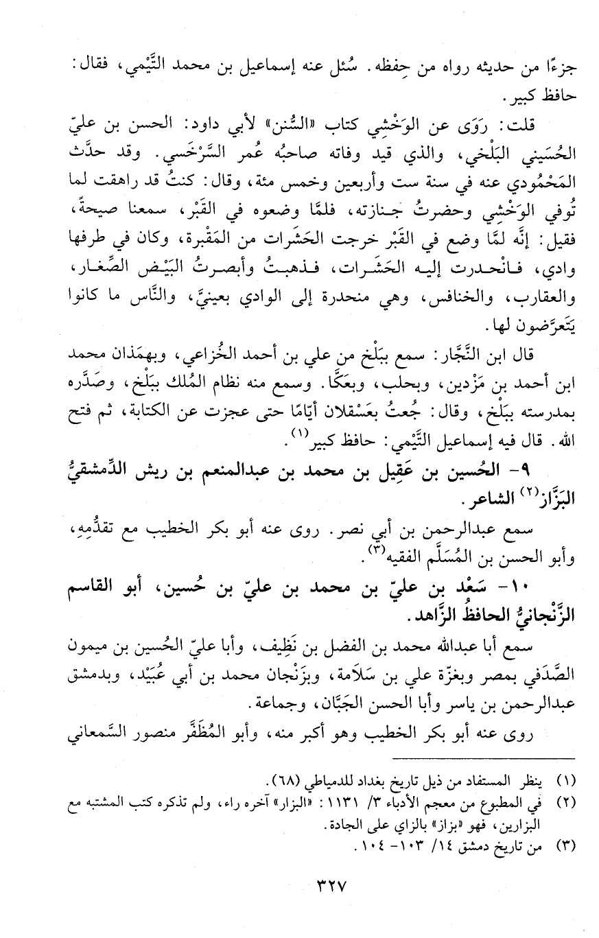 9 - الحسين بن عَقِيل بن محمد بن عبد المنعم بن ريش الدّمشقيّ البزّاز الشاعر. [المتوفى: 471 هـ]