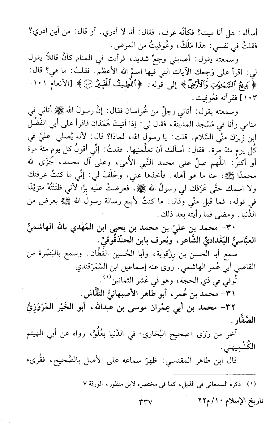 30 - محمد بن عليّ بن محمد بن يحيى ابن المهديّ بالله الهاشميّ العبّاسيّ البغدادي الشّاعر، ويعرف بابن الحنْدَقُوقيّ. [المتوفى: 471 هـ]