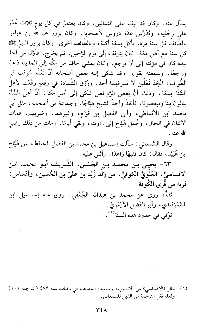 63 - يحيى بن محمد بن الحسن، الشّريف أبو محمد ابن الأقساسيّ، العلويّ الكوفيّ، [المتوفى: 472 هـ]