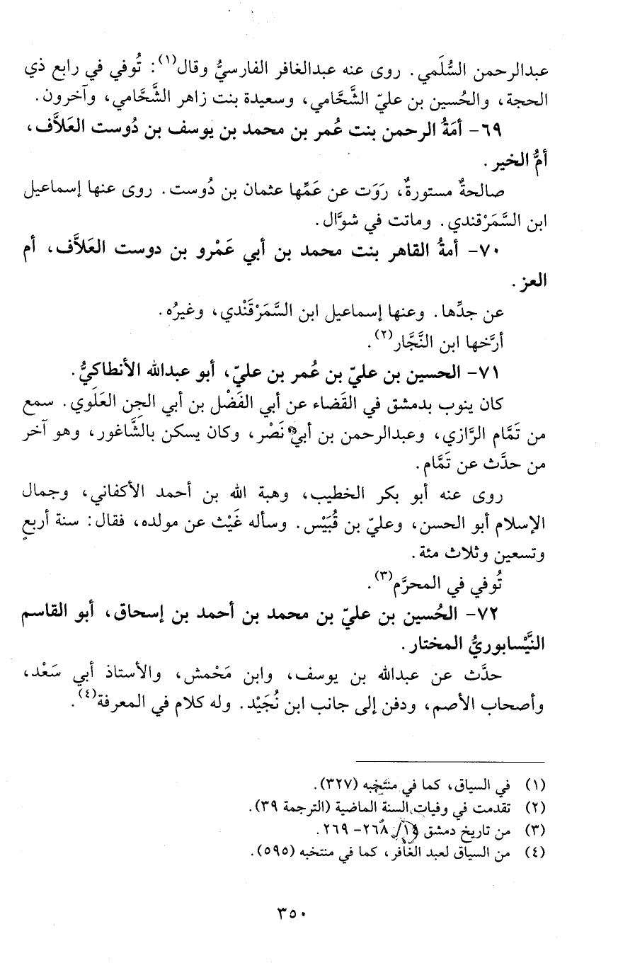69 - أَمَةُ الرحمن بنت عَمْر بن محمد بن يوسف بن دُوَسْت العلاف أمّ الخير. [المتوفى: 473 هـ]