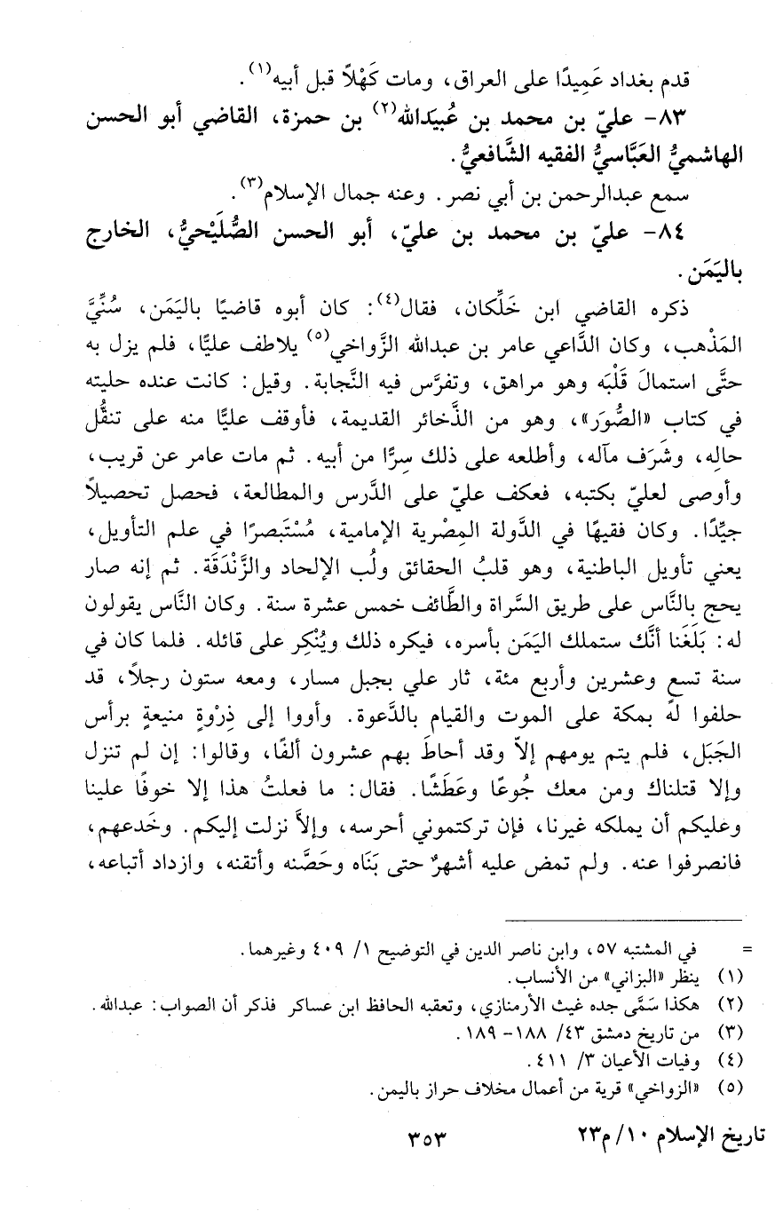 83 - عليّ بن محمد بن عُبَيْد الله بن حمزة، القاضي أبو الحَسَن الهاشميّ العبّاسيّ الفقيه الشّافعيّ. [المتوفى: 473 هـ]