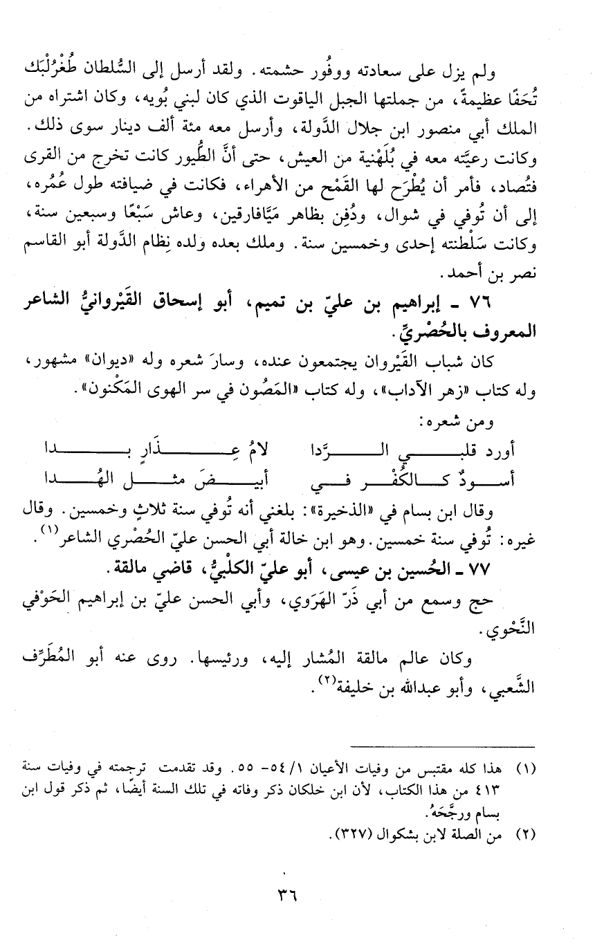 76 - إبراهيم بن عليّ بن تميم، أبو إسحاق القيروانيّ، الشاعر المعروف بالحُصري. [المتوفى: 453 هـ]