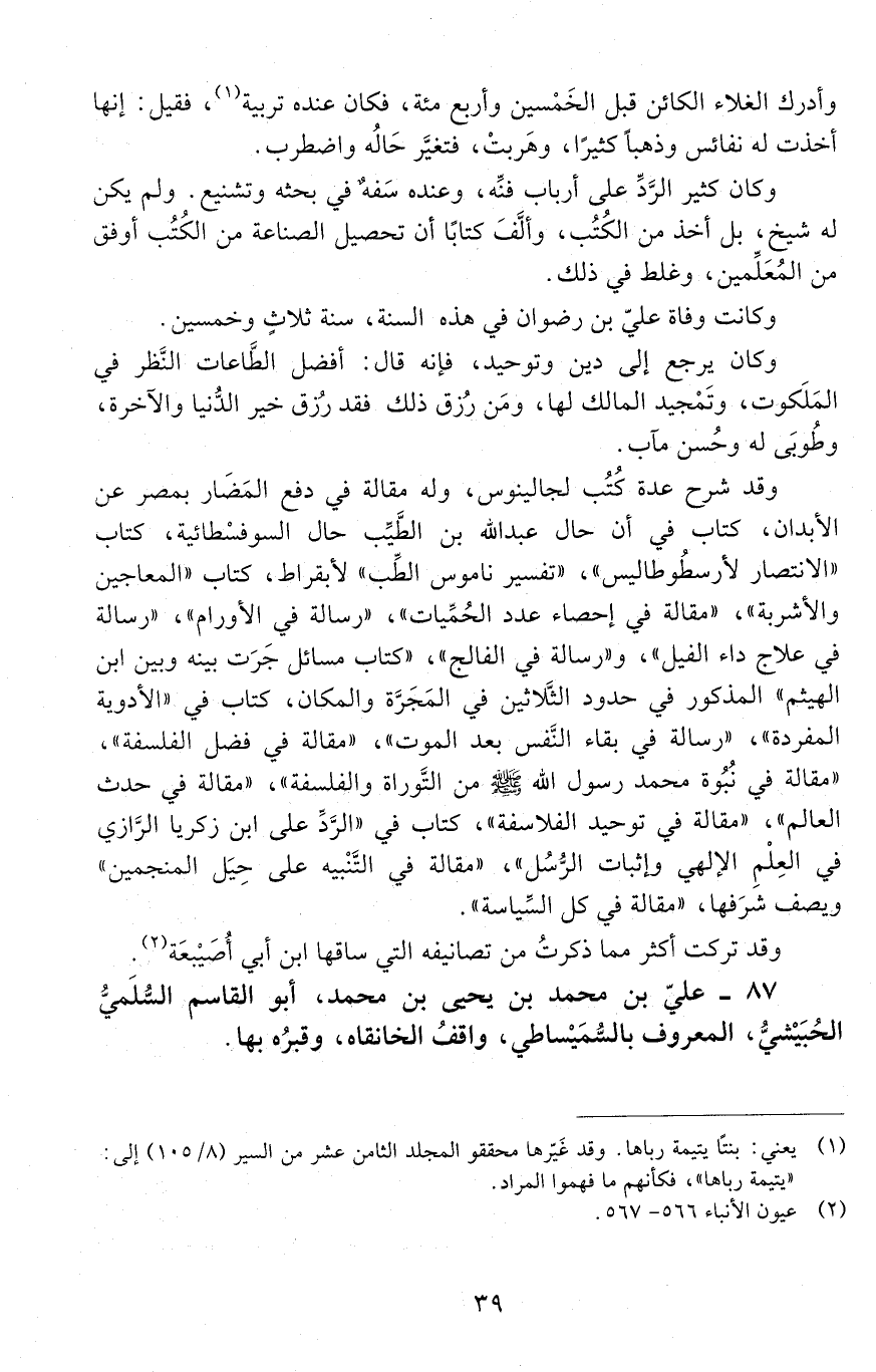 87 - عليّ بن محمد بن يحيى بن محمد، أبو القاسم السُّلَميّ الحُبَيْشيّ، المعروف بالسُّمْيَساطيّ، [المتوفى: 453 هـ]
