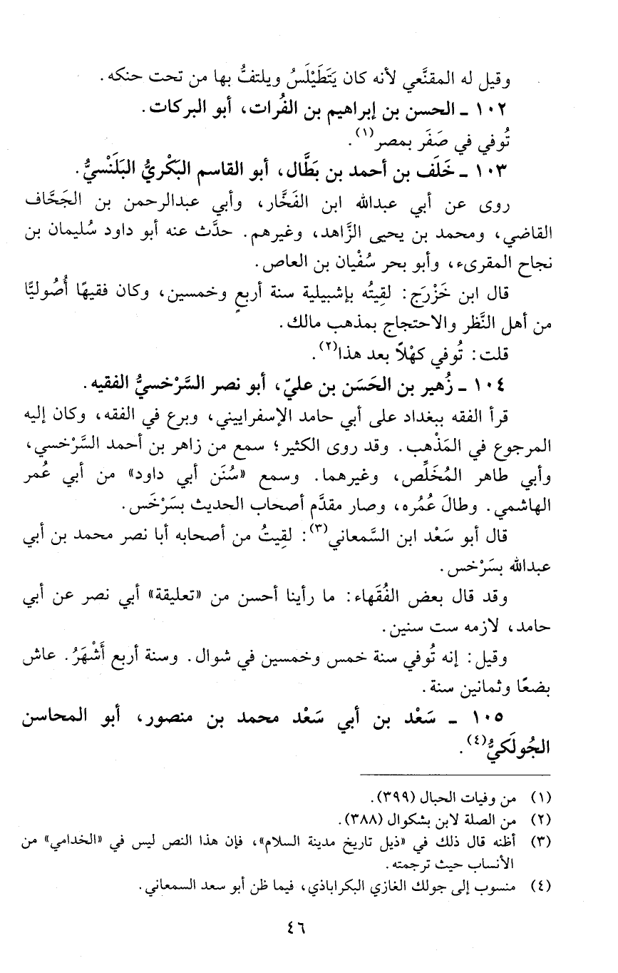 104 - زُهير بن الحَسَن بن عليّ، أبو نصر السّرخسيِّ الفقيه. [المتوفى: 454 هـ]