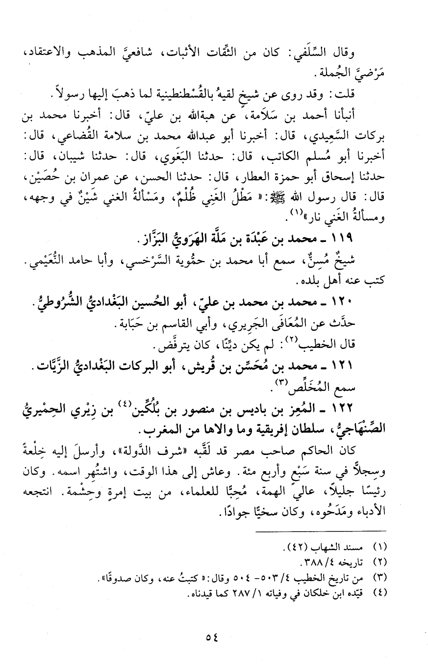 121 - محمد بن محسّن بن قريش، أبو البركات البغداديّ الزّيّات. [المتوفى: 454 هـ]