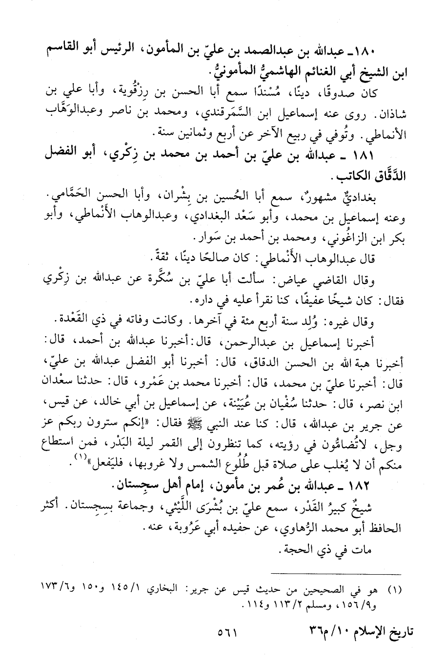 181 - عَبْدِ اللَّهِ بْنِ عَلِيِّ بْنِ أَحْمَدَ بْنِ محمد بن زِكْرِيّ، أبو الفضل الدّقّاق الكاتب. [المتوفى: 486 هـ]