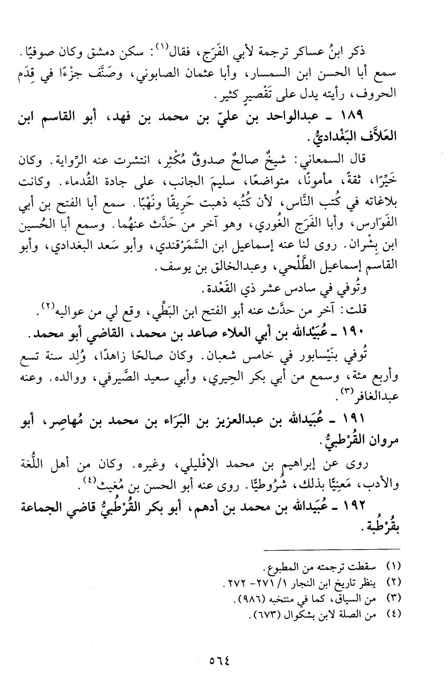 189 - عبد الواحد بن عليّ بن محمد بن فهد، أبو القاسم ابن العلّاف البغداديّ. [المتوفى: 486 هـ]