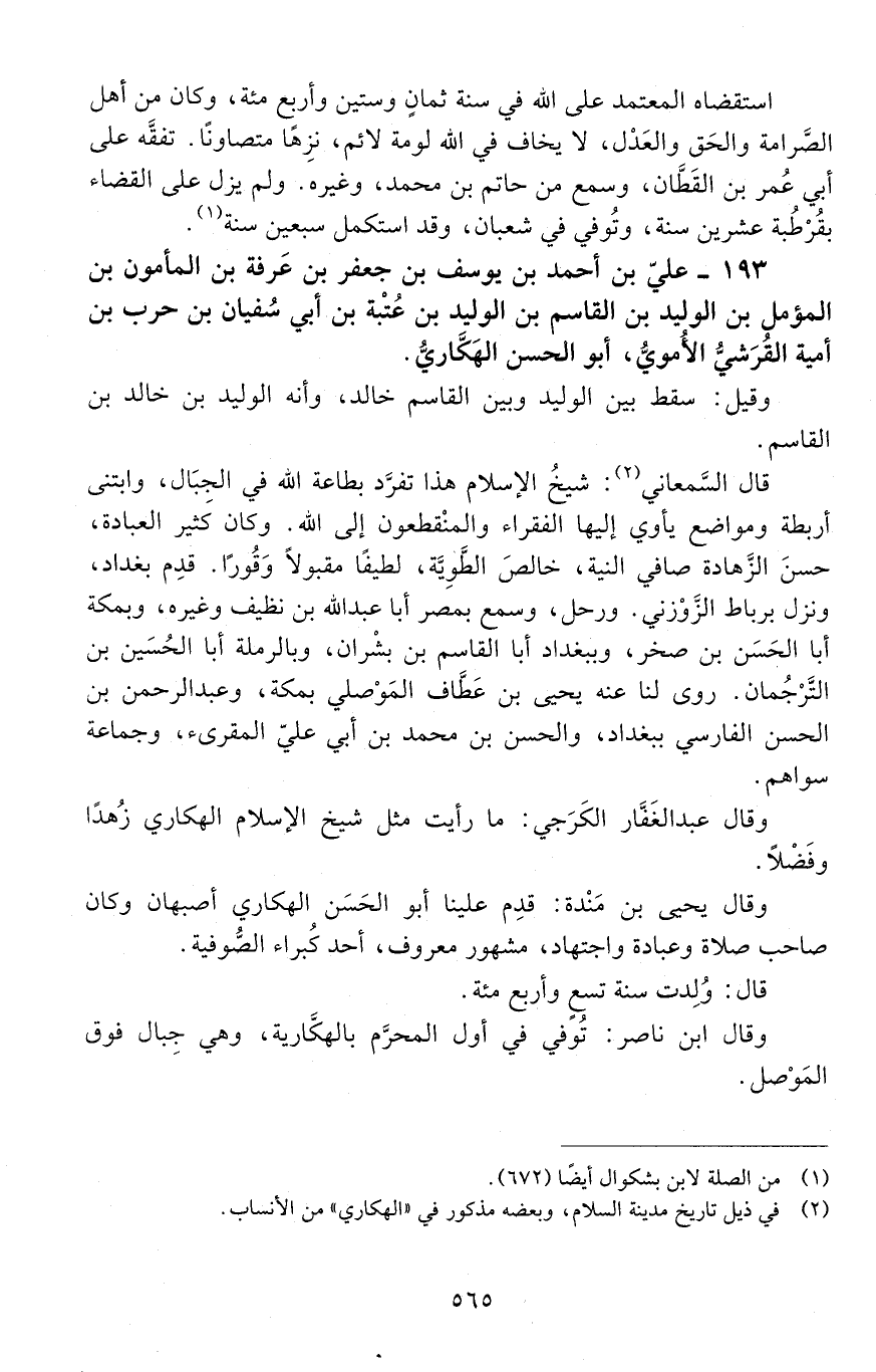 193 - عليّ بن أحمد بن يوسف بن جعفر بن عَرَفَة بن المأمون بن المؤمّل بن الوليد بن القاسم بن الْوَلِيدُ بْنُ عُتْبَة بْن أَبِي سُفْيَان بْن حرب بْن أُميّة القُرَشيّ الأُمويّ، أبو الحسن الهَكَّاريّ. [المتوفى: 486 هـ]