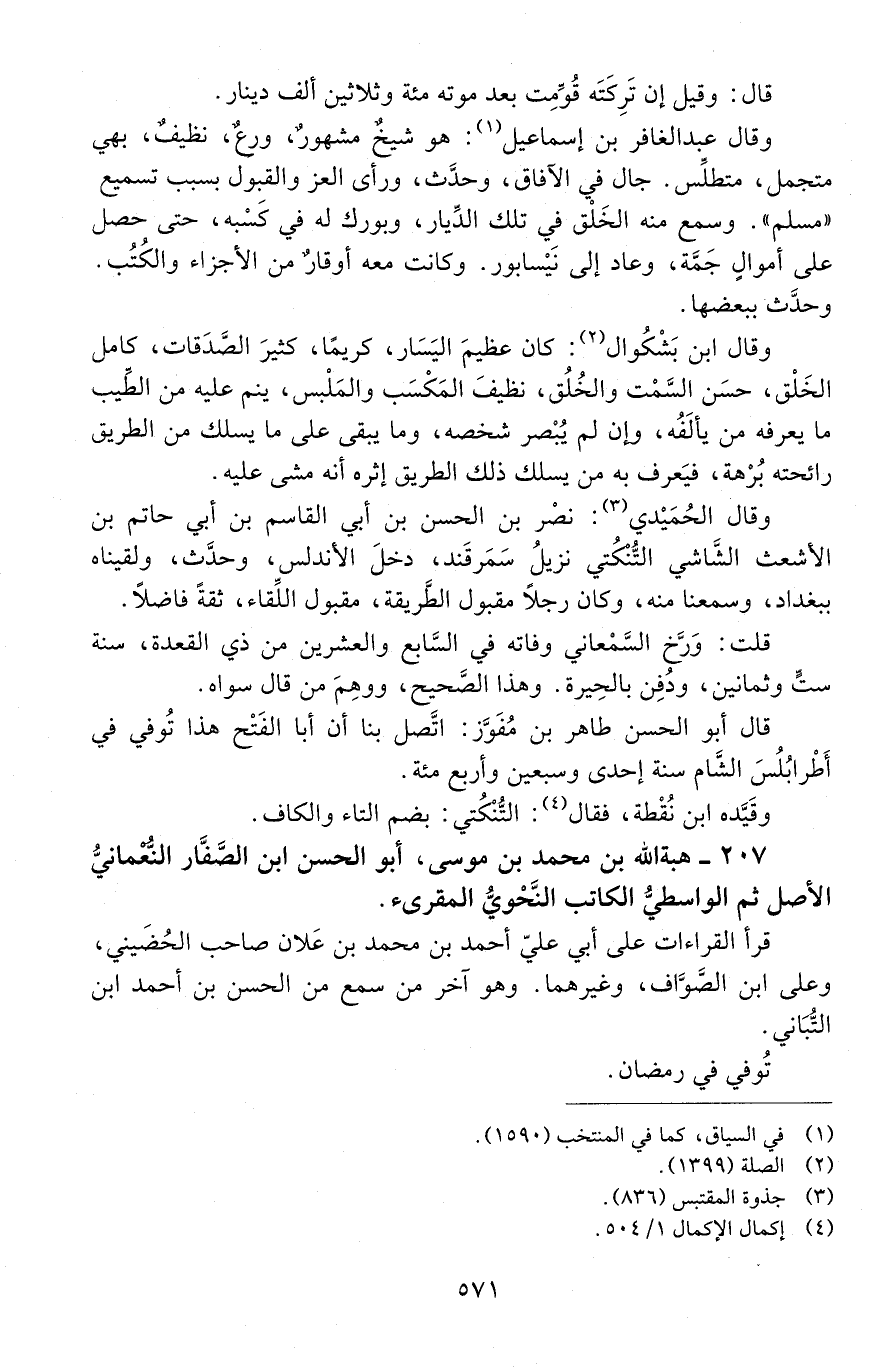 207 - هبة الله بن محمد بن موسى، أبو الحسن ابن الصّفّار النُّعْمانيّ الأصل، ثمّ الواسطيّ الكاتب النَّحْويّ المقرئ. [المتوفى: 486 هـ]