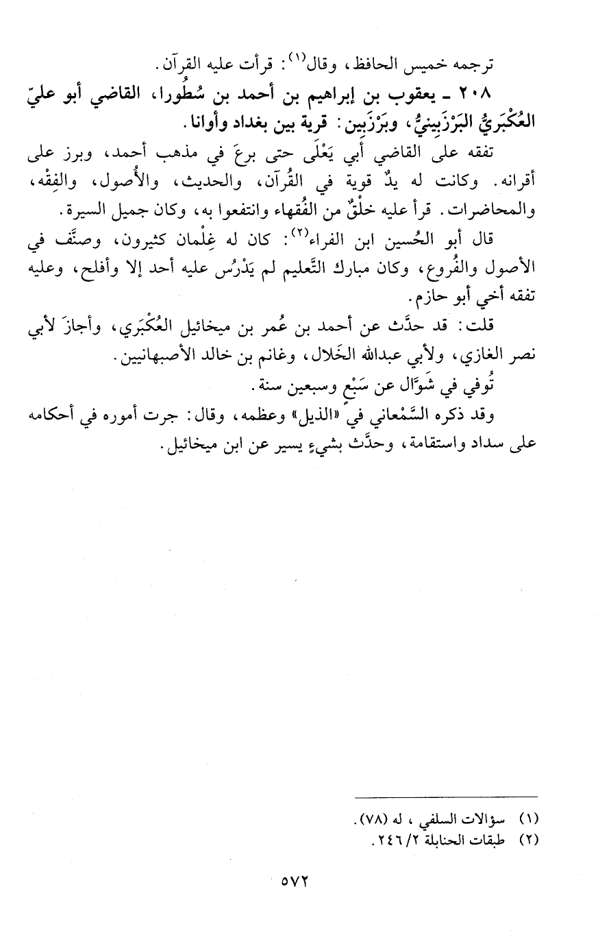 208 - يعقوب بن إبراهيم بن أحمد بن سُطُورا، القاضي أبو عليّ العُكْبَريّ البَرْزَبِينيّ، [المتوفى: 486 هـ]