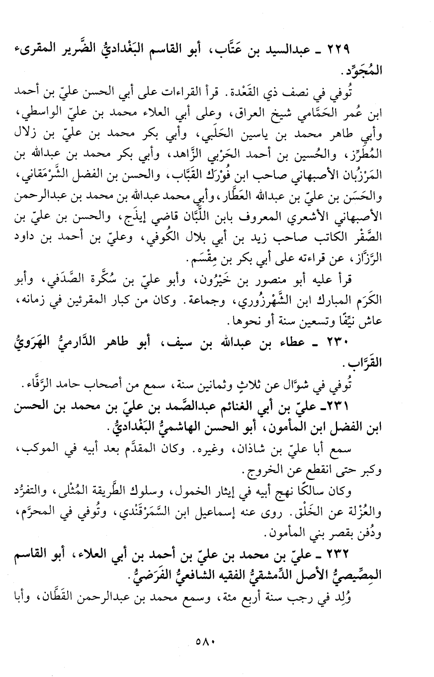 229 - عبد السّيّد بن عَتَّاب، أبو القاسم البغداديّ الضّرير المقرئ المجوّد. [المتوفى: 487 هـ]