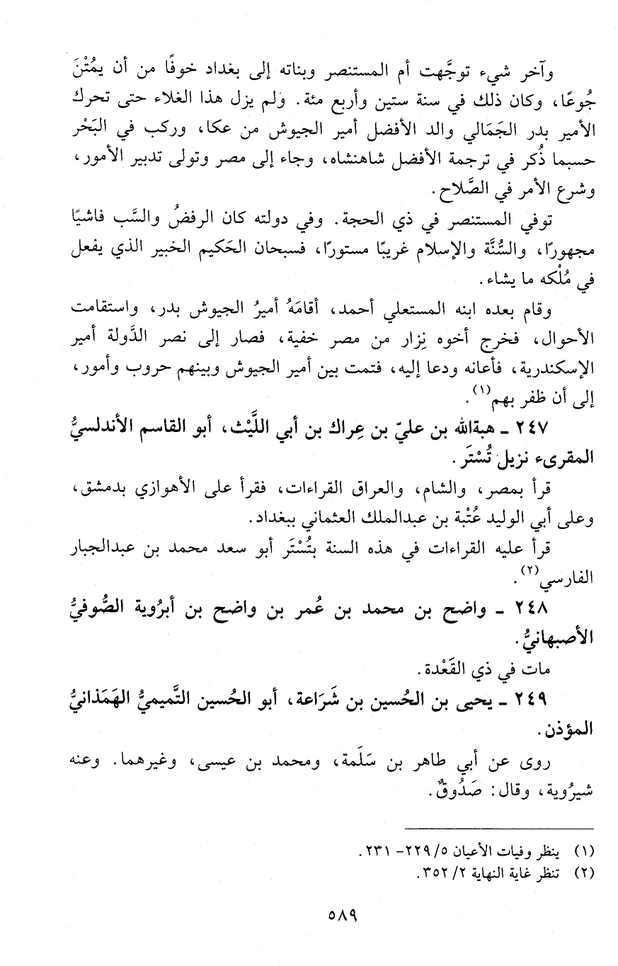 247 - هبة الله بن عليّ بن عِراك بن أبي اللّيث، أبو القاسم الأندلسيّ المقرئ [المتوفى: 487 هـ]